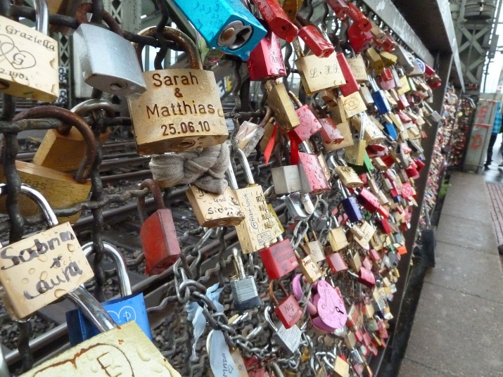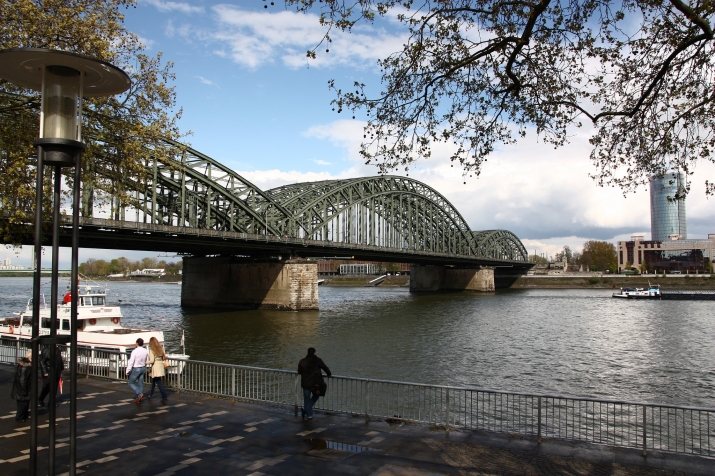 位於德國科隆(Köln)的霍亨索倫鐵橋(Hohenzollern Bridge),是一座橫跨在萊茵河上的鐵橋。總長409公尺的霍亨索倫橋是由鋼架搭建,主要是用來搭建鐵道提供火車行駛的結構物。不過,和台灣不一樣的是,台灣鐵路橋樑多只提供火車通行,而霍亨索倫鐵橋除了中央鋪設有鐵軌供火車通行之外,還設有人行步道,也就是說,行人可以藉由此橋以步行方式往來於萊茵河的兩岸之間。(據我所知,於雲林縣虎尾鎮的台糖公司旁有一座橫跨虎尾溪的虎尾鐵橋,是以前供台糖公司運糖小火車行駛的鐵橋,它的設計也是有設置人行步道的,不過,2012年蘇拉颱風來襲沖毀鐵橋,現在似乎還尚未修復。)